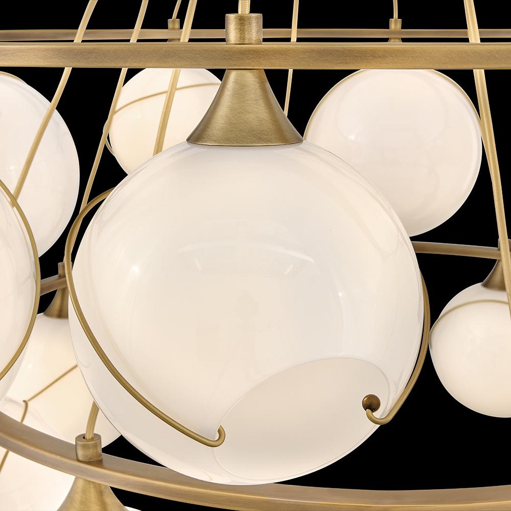 Mesmerizingly asymmetrical with a bohemian, mid-century modern flair, Skye showcases stunning globes of clear or cased opal glass with off-center openings. Slender rings and delicate details in Heritage Brass or Black finishes pull the look together, while adjustable wires allow you to create the perfect look for your space.