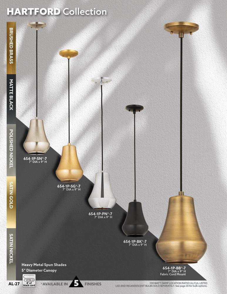 Fairfield - 1 Light - 7 inch - Brushed Brass - Cord hung - Mini Pendant