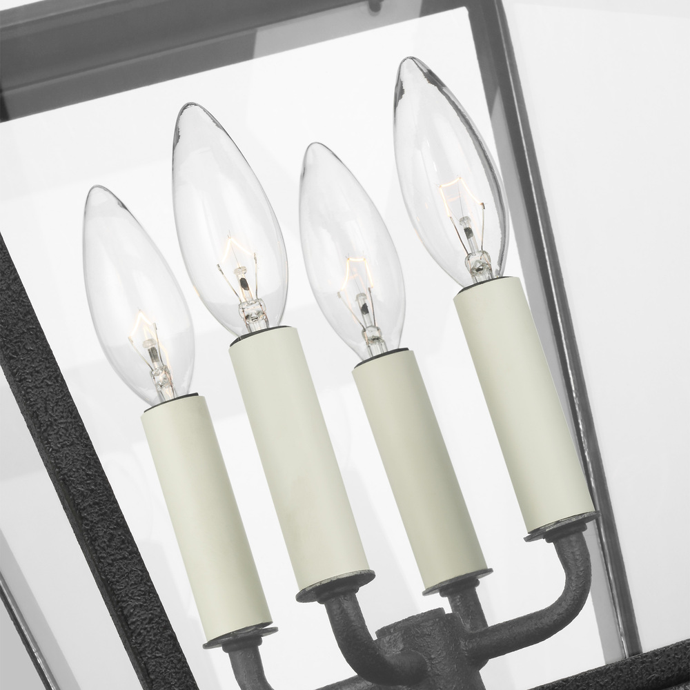 Falmouth by Chapman and Myers outdoor lighting design mimics a vintage gas lantern, with a classic, tapered box shape. The clean lines of the elegant frame have an uncluttered silhouette that showcases the beautiful panels of clear glass.