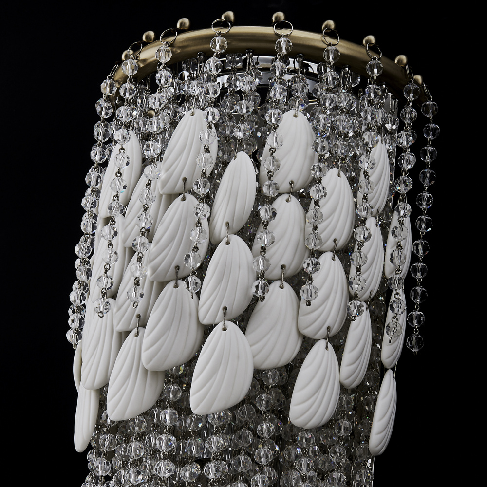 Add sophisticated, boho flair to your space with the Farfalle collection. Sparkling Firenze crystals and bone china accents reminiscent of butterfly wings create an artful interplay of light and texture as the strands naturally move and sway with the breeze. Combined with our Brushed Champagne Gold finish (038), the Farfalle collection blends modern elegance with artistic charm, making it a striking, yet light and airy centerpiece for any room.