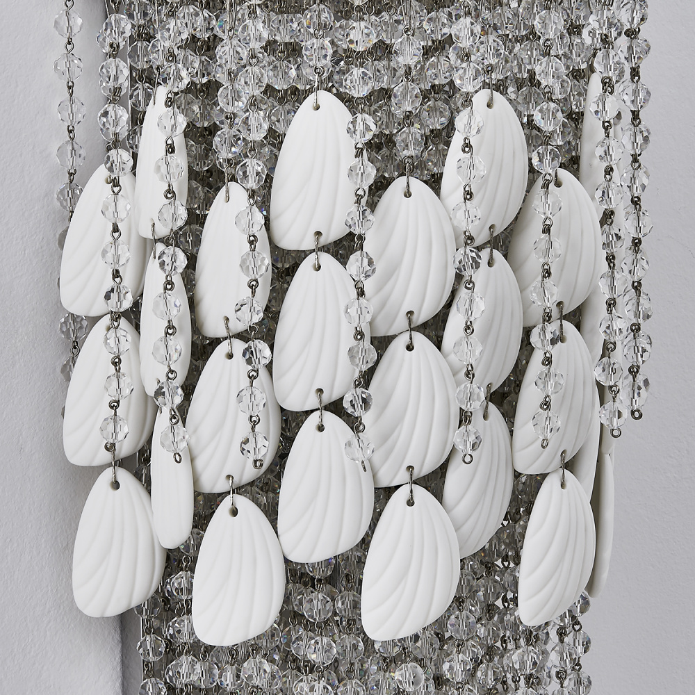 Butterflies' wing-like Bone China accent creates material contrast with crystals making this collection visually softens and lighter.