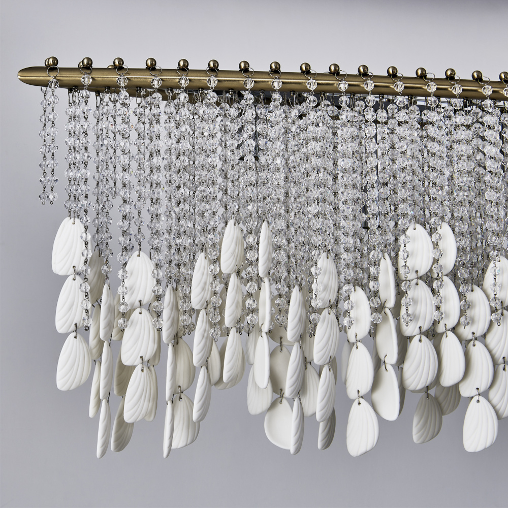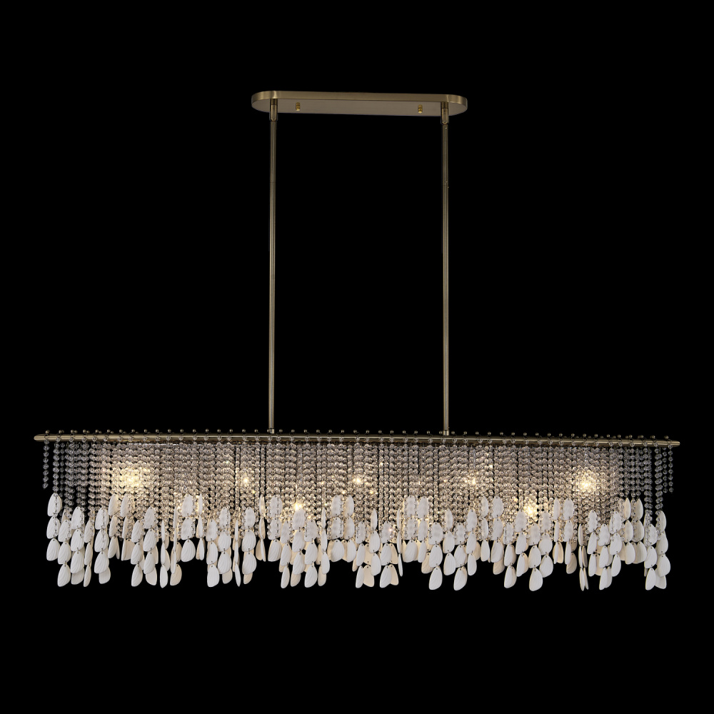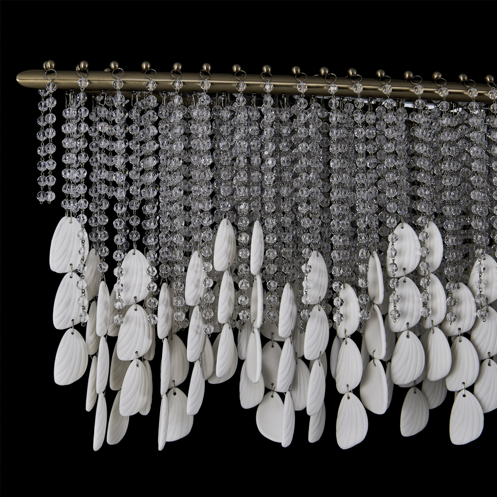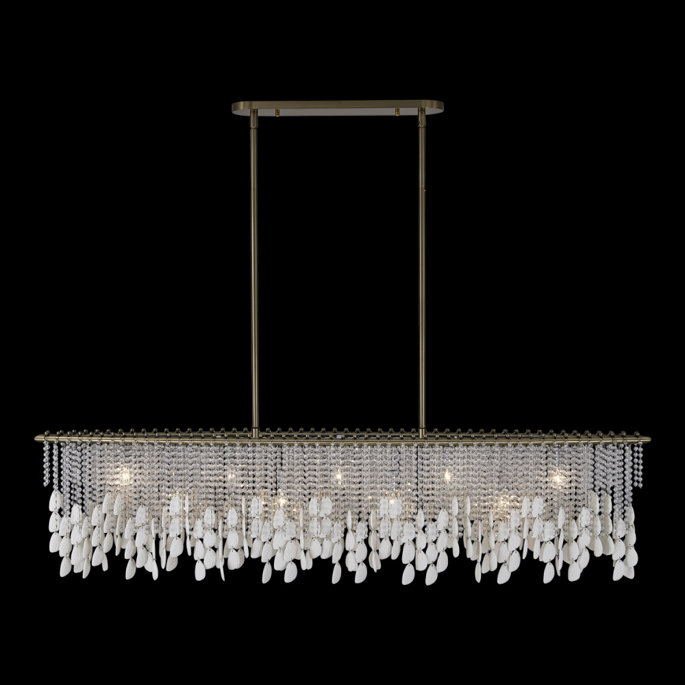 Add sophisticated, boho flair to your space with the Farfalle collection. Sparkling Firenze crystals and bone china accents reminiscent of butterfly wings create an artful interplay of light and texture as the strands naturally move and sway with the breeze. Combined with our Brushed Champagne Gold finish (038), the Farfalle collection blends modern elegance with artistic charm, making it a striking, yet light and airy centerpiece for any room.