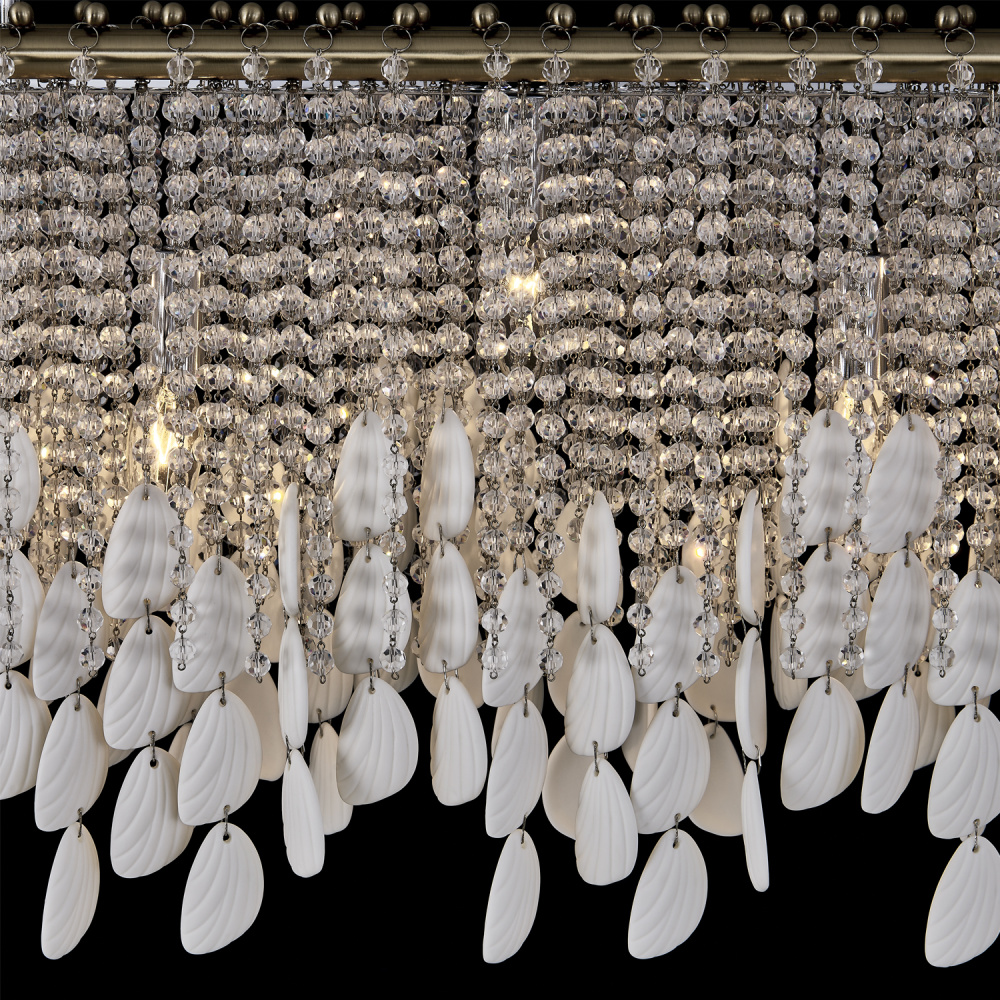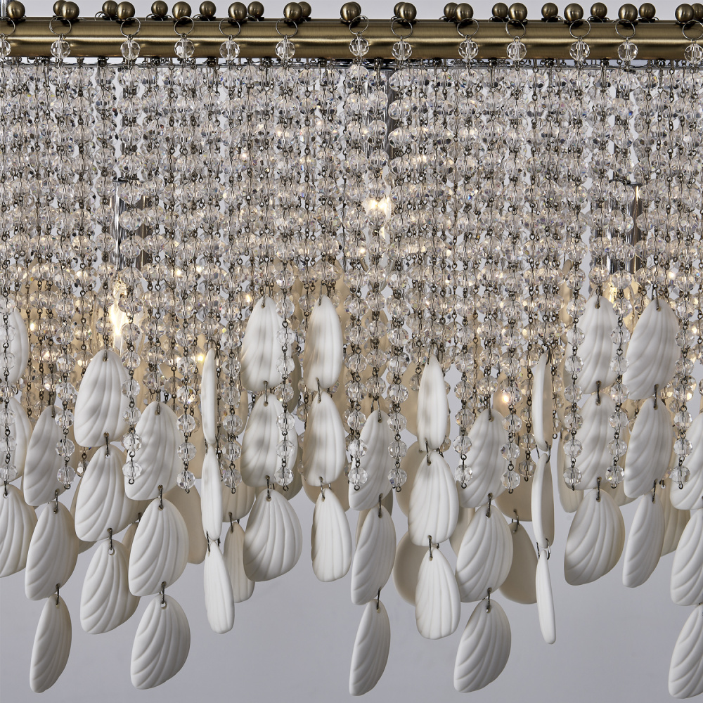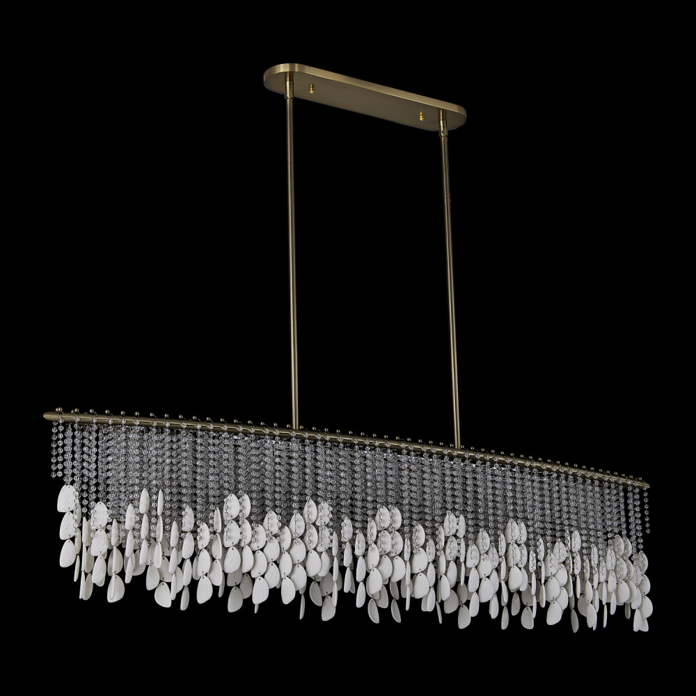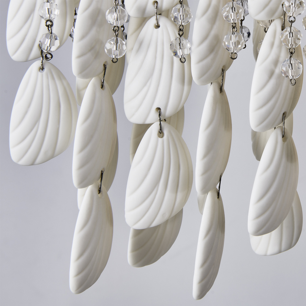 Add sophisticated, boho flair to your space with the Farfalle collection. Sparkling Firenze crystals and bone china accents reminiscent of butterfly wings create an artful interplay of light and texture as the strands naturally move and sway with the breeze. Combined with our Brushed Champagne Gold finish (038), the Farfalle collection blends modern elegance with artistic charm, making it a striking, yet light and airy centerpiece for any room.