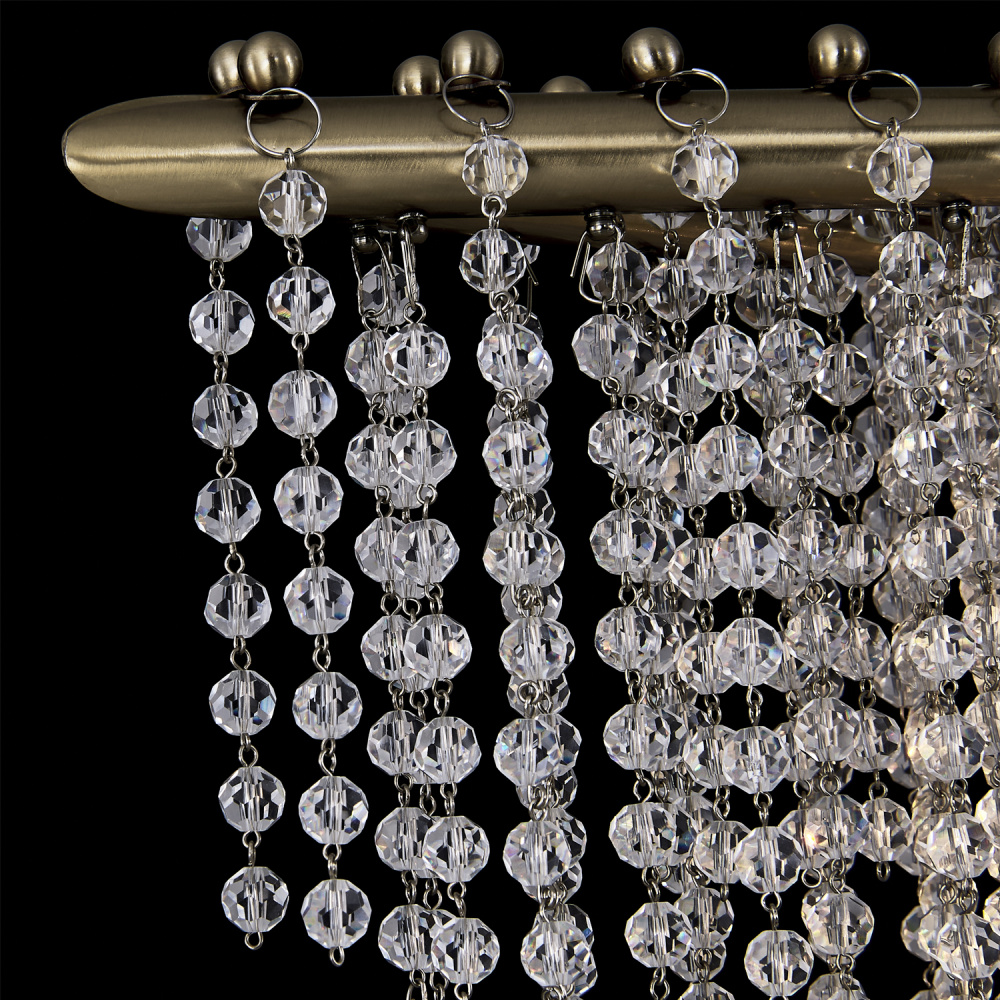 Waterfall crystal drapes over the mainframe is a unique design feature of this wedding cake style crystal chandelier