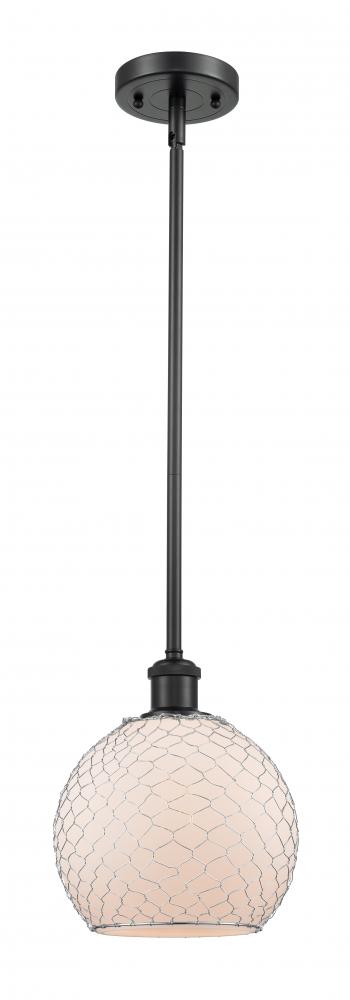 Farmhouse Chicken Wire - 1 Light - 8 inch - Matte Black - White Glass with Nickel Wire Shade - Mini Pendant