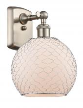 Farmhouse Chicken Wire - 1 Light 8" Sconce - Incandescent Bulb - Matte Black Finish - Clear Glass with Nickel Wire Shade