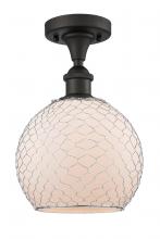 Farmhouse Chicken Wire - 1 Light 8" Semi-Flush Mount - Incandescent Bulb - Matte Black Finish - Clear Glass with Nickel Wire Shade