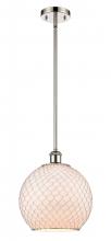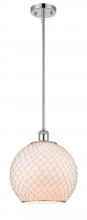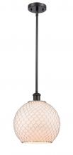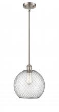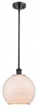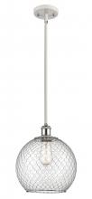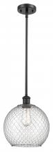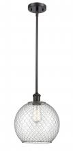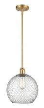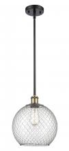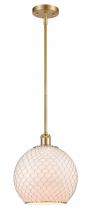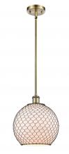 Farmhouse Chicken Wire - 1 Light 10" Mini Pendant - Incandescent Bulb - Satin Gold Finish - White Glass with Black Wire Shade