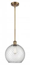Farmhouse Chicken Wire 1 Light 10 inch Mini Pendant Solid Brass 90 Degree Hang Straight Swivel for Sloped Ceilings Included