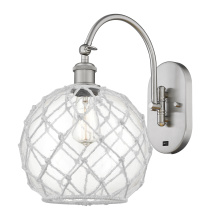 Farmhouse Rope - 1 Light - 10 inch - Antique Brass - White Glass with White Rope shade - Adjustable - Sconce