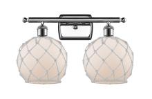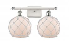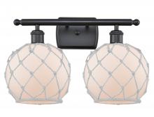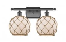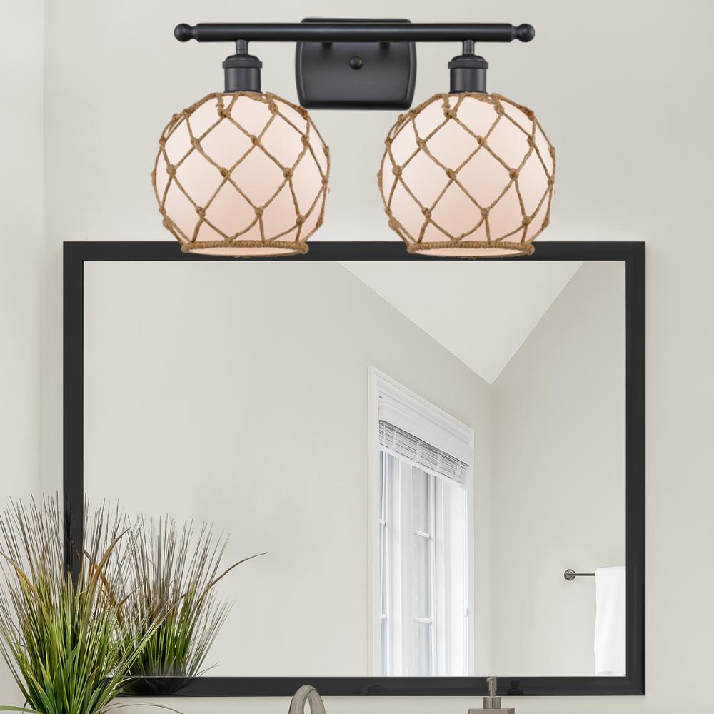 Farmhouse Rope - 2 Light - 18 inch - Matte Black - White Glass with Brown Rope Shade - Bath Vanity Light