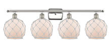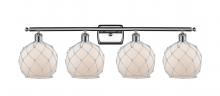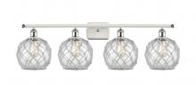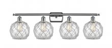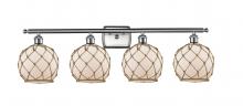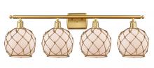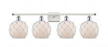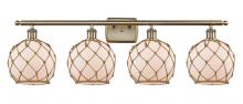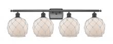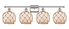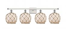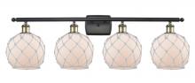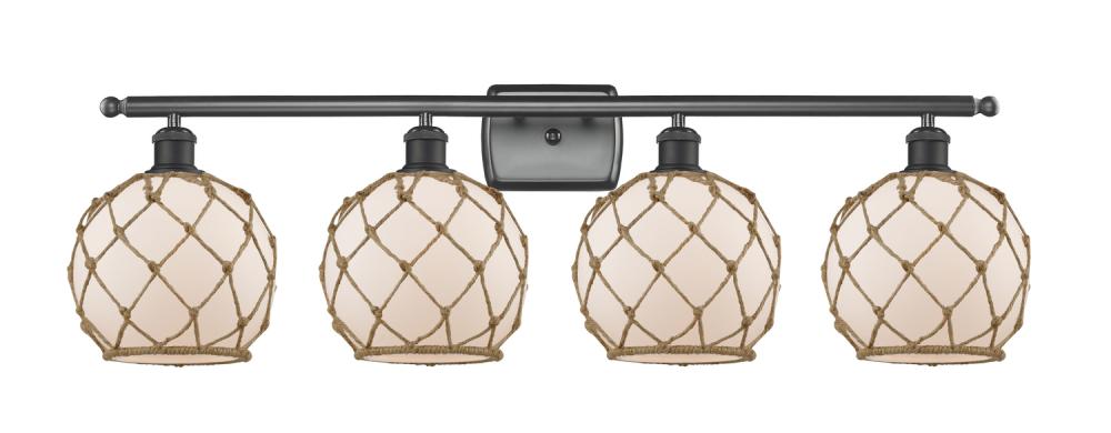 Farmhouse Rope - 4 Light - 38 inch - Matte Black - White Glass with Brown Rope Shade - Bath Vanity Light