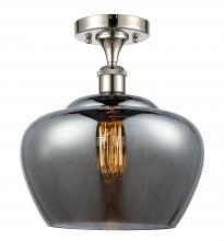Fenton - 1 Light - 11 inch - Brushed Satin Nickel - Light Smoke Shade - Semi-Flush Mount