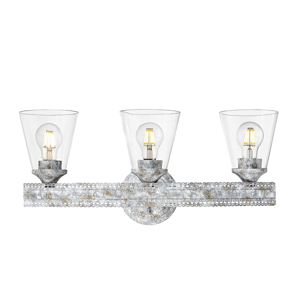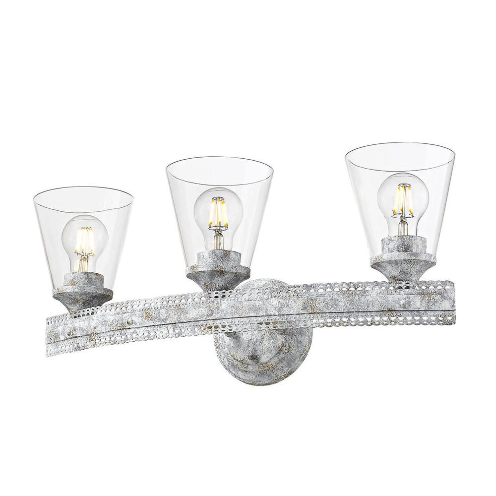 Ferris 3-Light Bath Vanity in Oyster with Clear Glass Shade