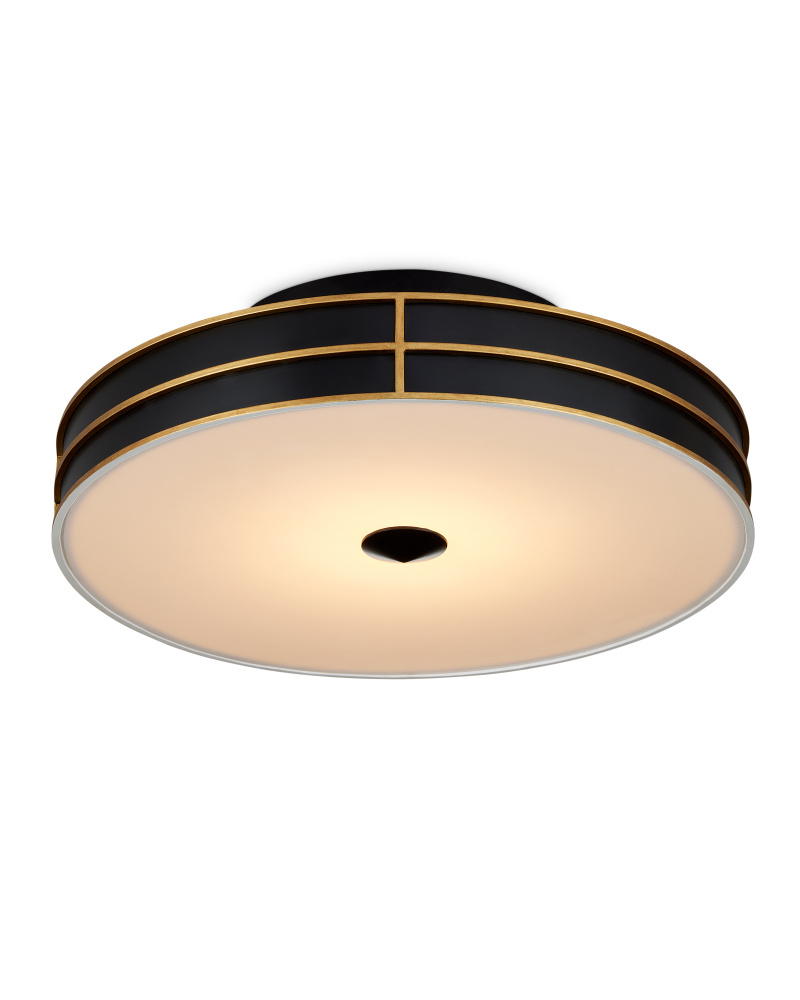 The design of the Fielding Black Flush Mount was inspired by the engineering capabilities that its integrated LED technologies bring to the table. It features a very modern profile with a hint of Hollywood glamour in its makeup. Made of wrought iron, the exterior of the shade showcases a sophisticated mix of Satin Black and Contemporary Gold finishes, with a Sugar White rim where the metal meets the acrylic diffuser.