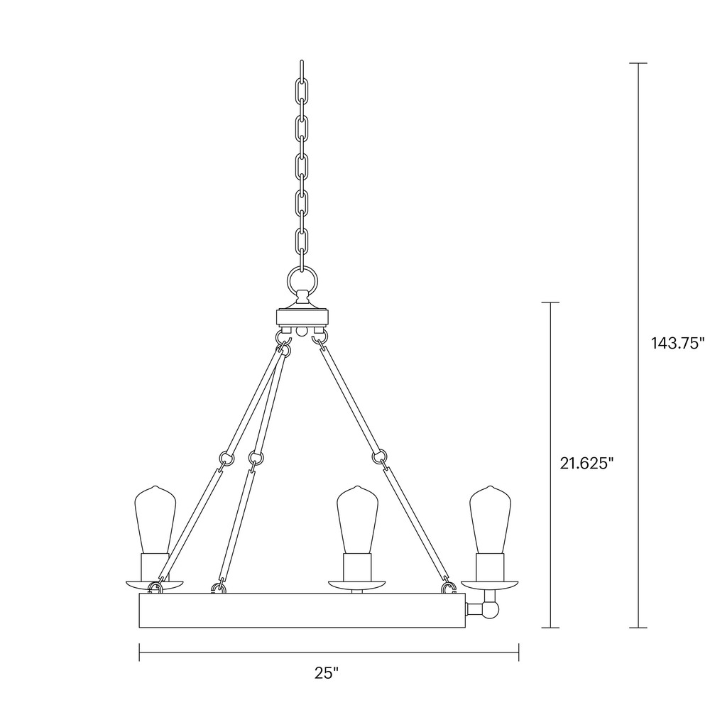The Ravenwood Manor five light single tier chandelier in stardust is the perfect way to achieve your desired fashion or functional needs in your home. Offered in both round and rectangular silhouettes, the Ravenwood Manor lighting collection by brings an industrial, chic vibe to any interior and effortlessly replaces traditional chandeliers or linear suspension pieces with a much more unique, minimalist approach. From the crown of each fixture, linked rods descend to support the clean lines of the open central frame. The overall focal point is series of bare lamps in sleek sockets which are each set-off by the spherical detail of the bobeches to soften the overall rustic design. Choose antique Edison-style or medium base bullet lamps to create two, distinct looks. Offered in the Stardust finish, the full lighting collection includes a nine-light round chandelier, an eight-light rectangular chandelier and a five-light round chandelier.