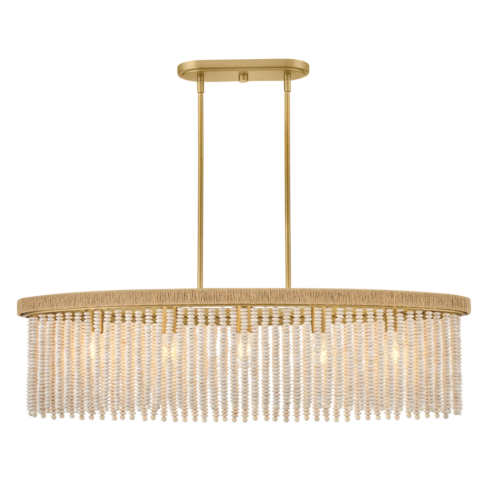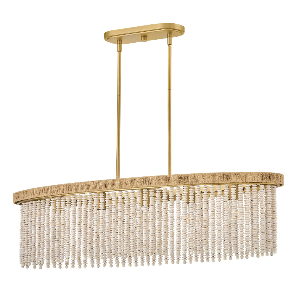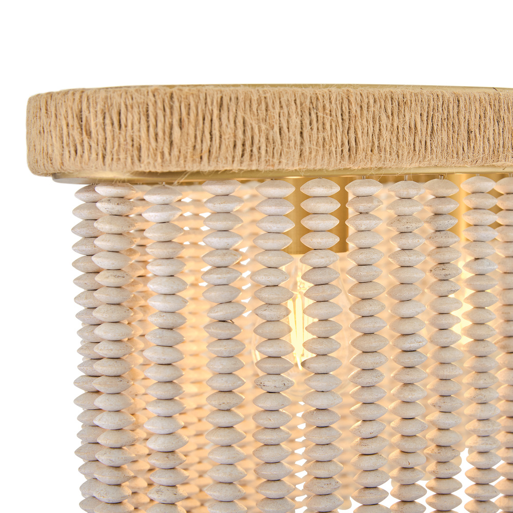 Indra blends coastal styling with an elegant transitional silhouette to fill your space with a naturally inspired atmosphere. A hand-strung curtain of stacked, taupe wooden beads diffuses warm illumination, while a frame hand-wrapped in natural fiber jute rope adds a touch of organic texture to your decor.