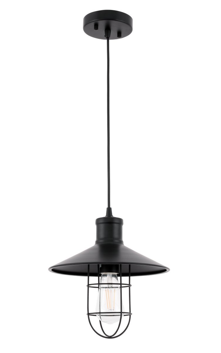 Black finish pendant with a stylish cone shaped and open lattice gridded shade