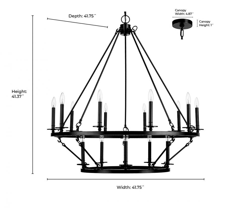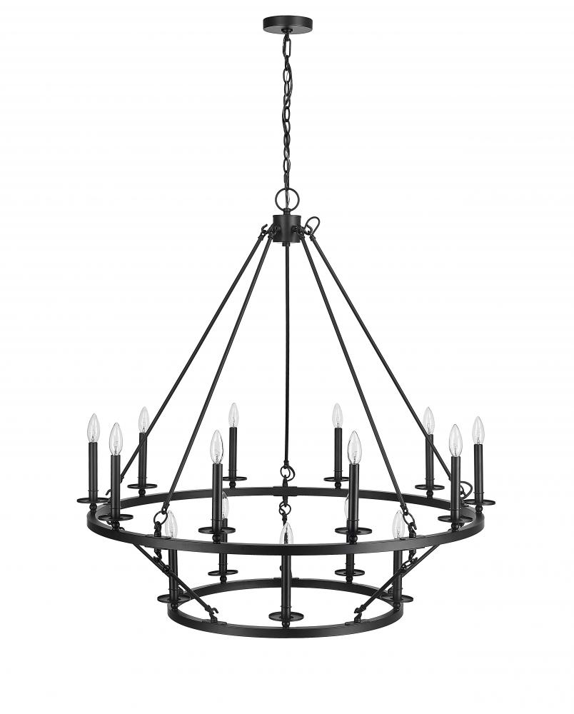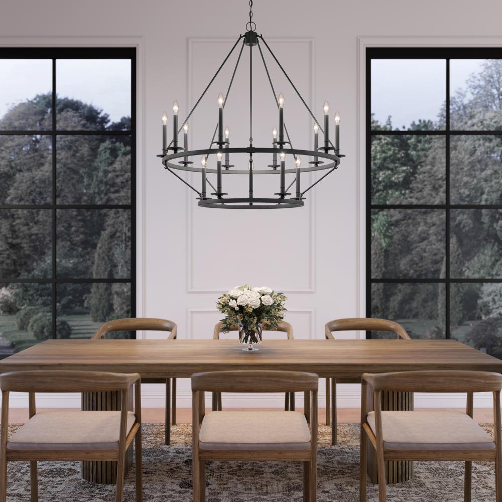 The Florence Collection is chandelier lighting designed on a grand scale that fits any ample space. The two-tiered fixture is suspended by perfectly symmetric rods equipped with 15 candle lights for a dramatic effect. Finished in classic matte black, the design profile is simple yet sophisticated and perfect for great rooms and dining areas with soaring ceilings.