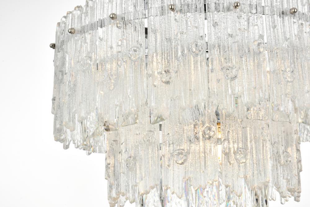 Elevate your space with our 15-inch crystal flush mount, a dazzling blend of strength and sophistication. Crafted with four tiers and adorned with a captivating snow flower glass overlay, this lighting masterpiece delivers both refined aesthetics and practical illumination. The durable iron construction ensures enduring elegance, complemented by intricate floral detailing for a touch of natural beauty. with a UL rating, our fixture not only guarantees an elegant ambiance but also upholds stringent safety standards for your peace of mind. Illuminate your surroundings with enduring style and opulent brilliance, making every moment a showcase of sophistication.