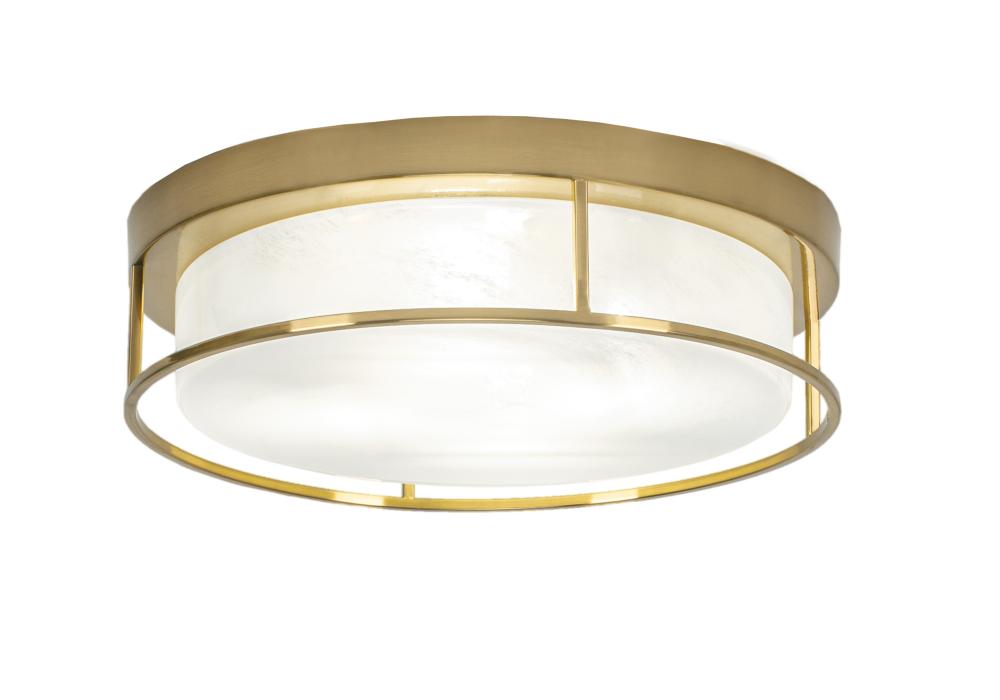 18 Flush Mount, 4-Bulbs, Shown In New Age Brass Finish With White Marble Glass