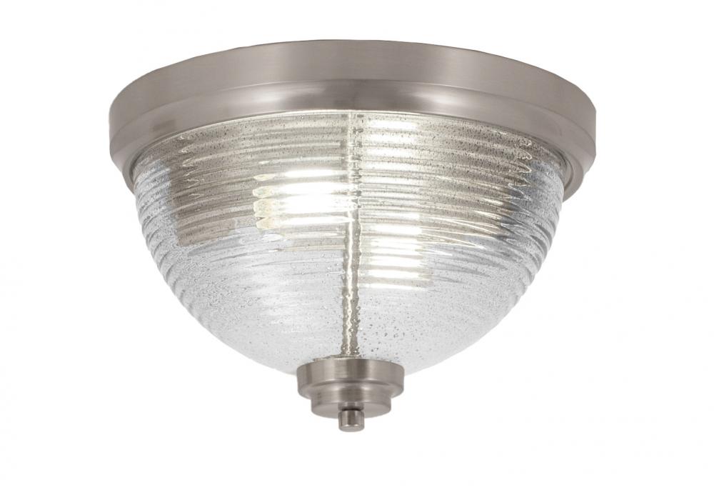 Toltec Lighting 822-BN-7 12 Flush Mount, 2-Bulbs Shown In Brushed Nickel Finish With Smoke Ribbed Glass