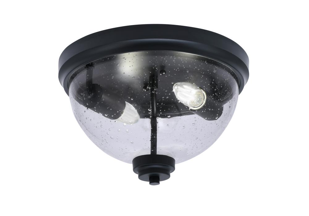 Toltec Lighting 822-MB-0 12 Flush Mount, 2-Bulbs, Shown In Matte Black Finish With Clear Bubble Glass