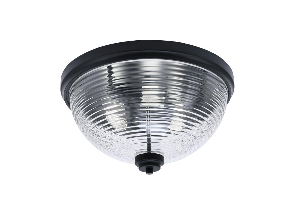 Toltec Lighting 826-MB-6 16 Flush Mount, 3-Bulbs, Shown In Matte Black Finish With Clear Ribbed Glass