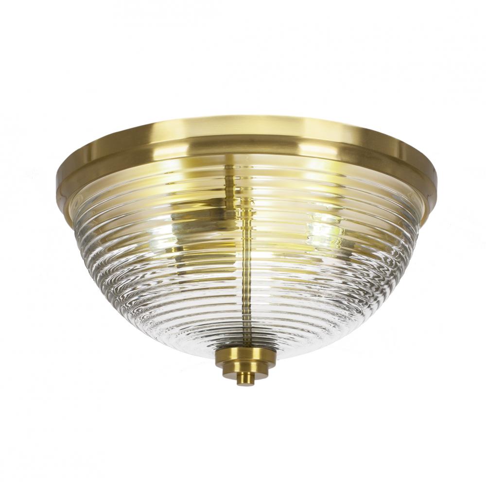 Toltec Lighting 826-NAB-6 16 Flush Mount, 3-Bulbs, Shown In New Age Brass Finish With Clear Ribbed Glass