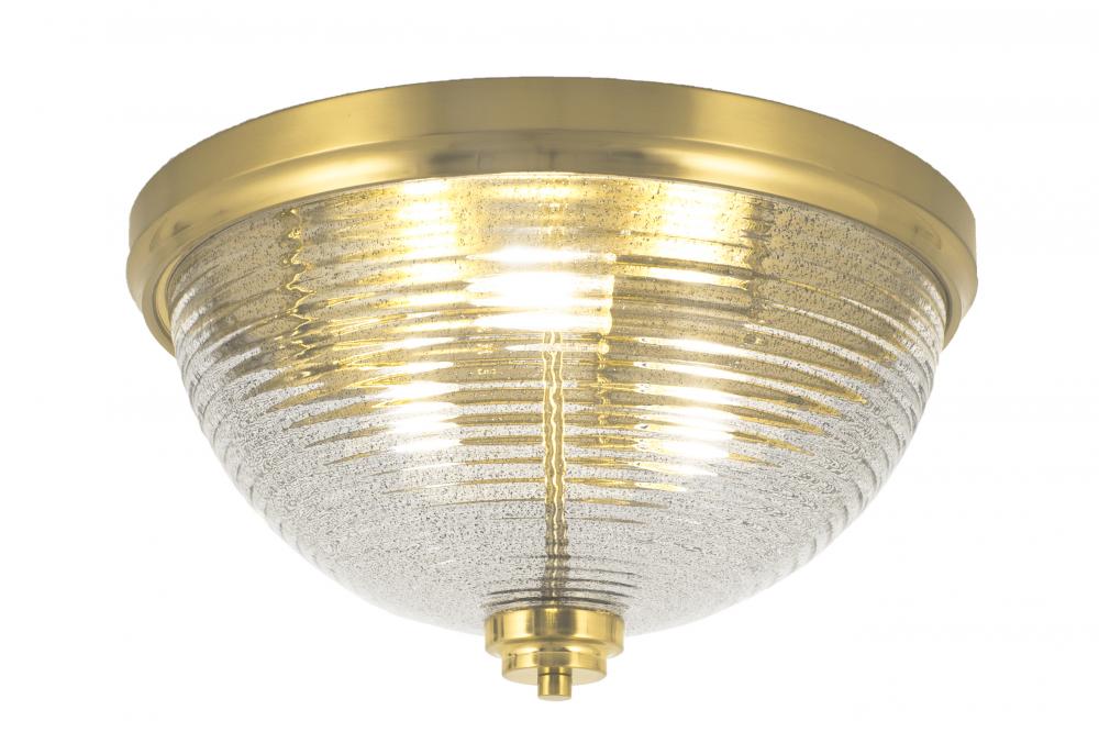 16 Flush Mount, 3-Bulbs, Shown In New Age Brass Finish With Smoke Ribbed Glass