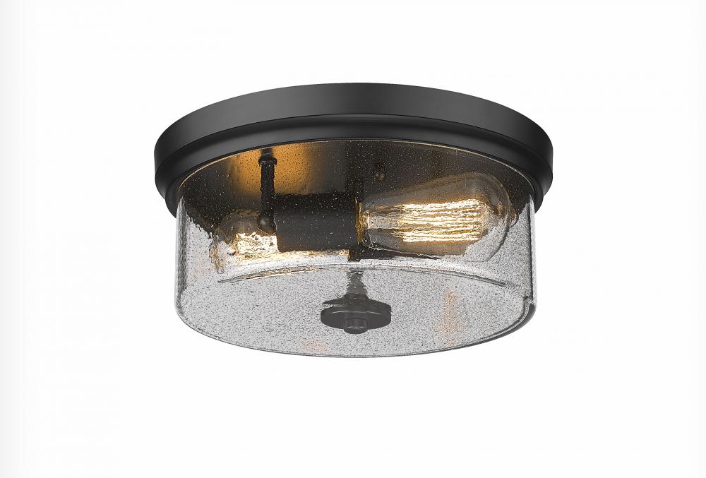 Toltec Lighting 832-MB-2 12 Flush Mount, 2-Bulbs, Shown In Matte Black Finish With Smoke Bubble Glass