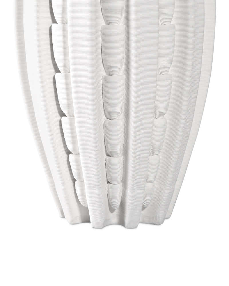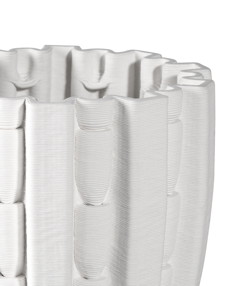 Intermingling the past and the present, the Fluted Small Vase is made of 3D-printed porcelain to place it at the crossroads of the ancient and futuristic worlds. The fact that a machine fashioned it looks forward; while the kiln in which it was fired just as it would have been centuries ago, looks back. The result is a contemporary white vase that reads like a masterpiece made by hand.