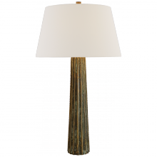 Fluted Spire Large Table Lamp in Aged Iron with Linen Shade