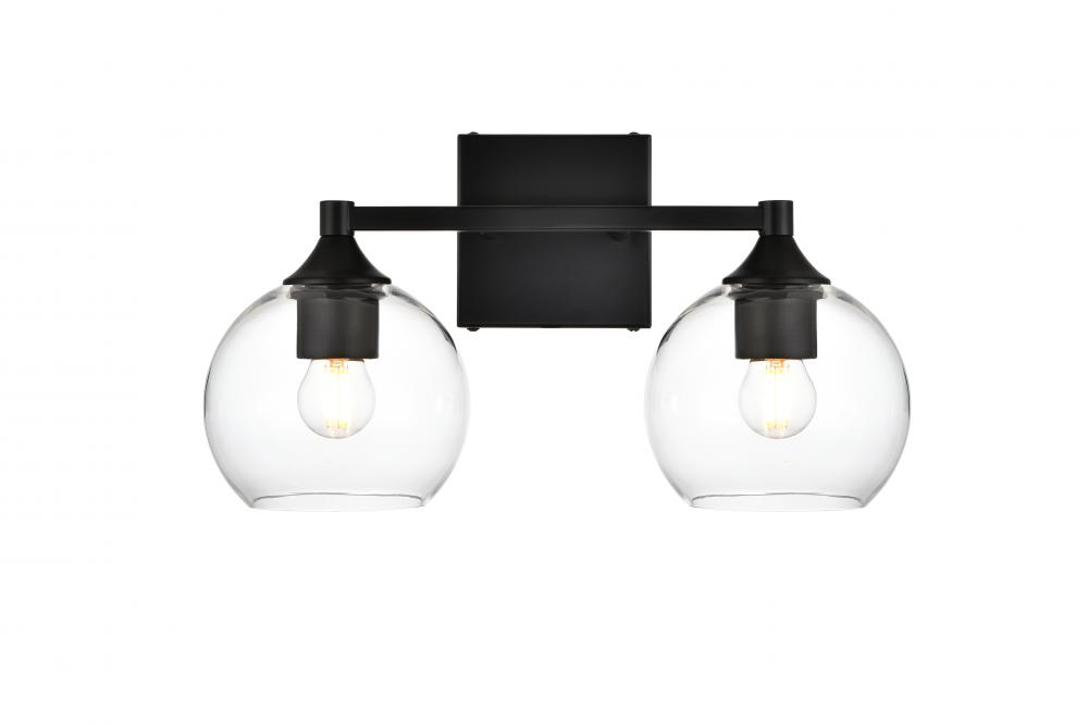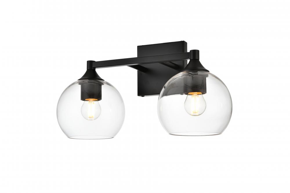Elegant LD7308W16BLK - Foster 2 light Black and Clear Bath Sconce