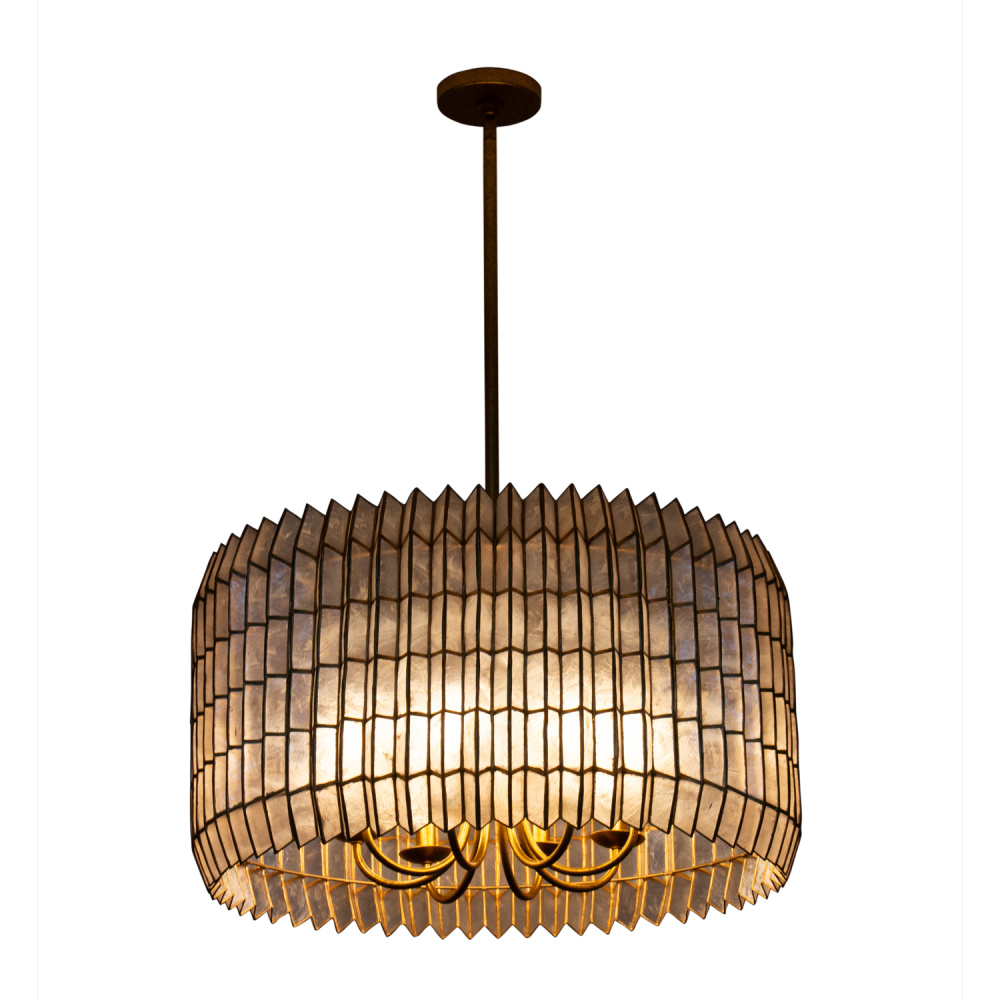 Material: Steel, Natural Capiz Shell, Brass frames.Finish: Oxidized Gold Leaf
