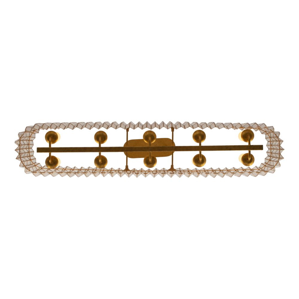 Drawing inspiration from origami, geometric designs, and the natural elegance of crystal cuts, the Fractal collection showcases a captivating zig-zag frame pattern mirrored in the capiz shade’s form. It emanates a gentle, warm glow that beautifully highlights its intricate design and understated shape. The piece is completed with a hand-applied Oxidized Gold Leaf (OL) finish, adding a touch of refined artistry.