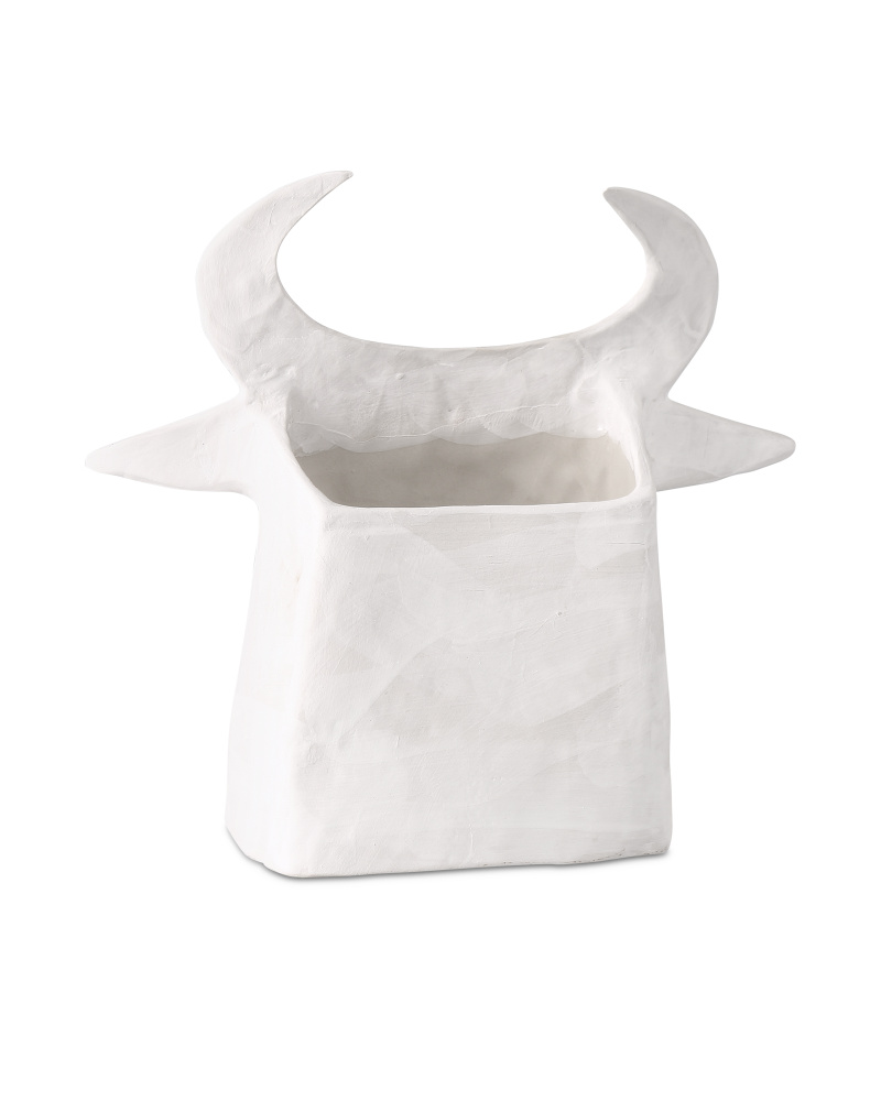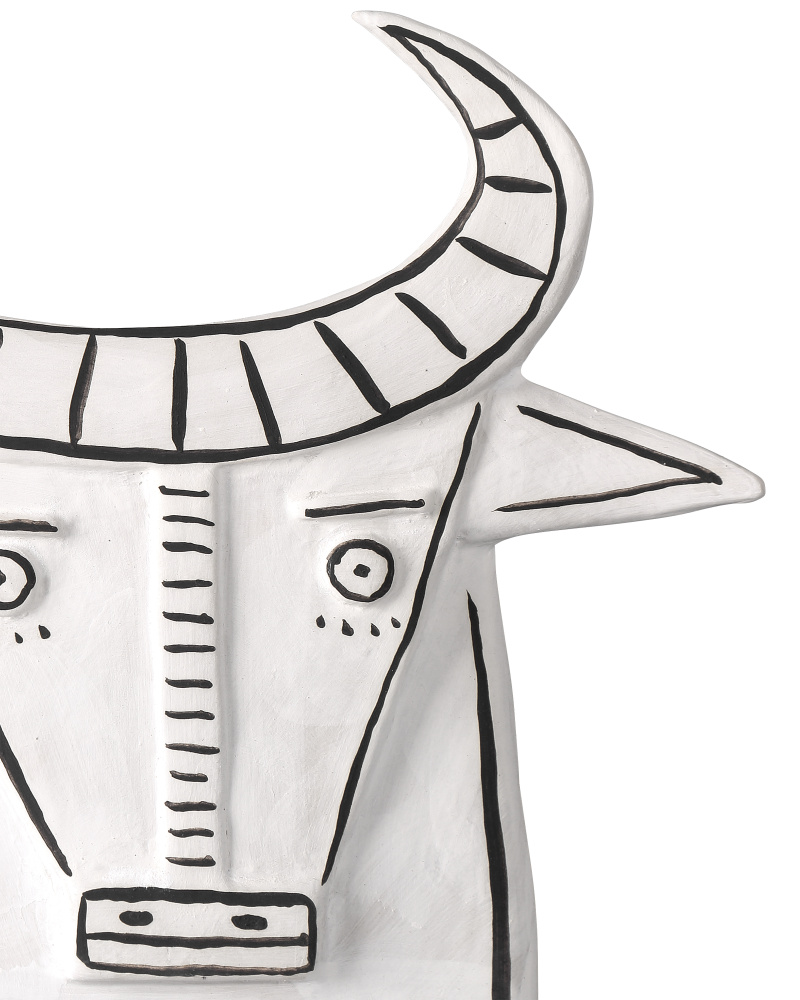 Artist Xiang Yang, a brilliant ceramist, took a walk on the wild side when he created Frank the Bull. Made of porcelain in a washed-white finish with black whimsical details painted by the artist, the haunting vessel will create a stir not unlike Picasso's work did during his ceramics period as he experimented in the South of France.