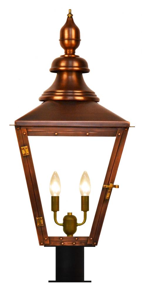 Size 42 Electric Copper Lantern, 2 candelabra base sockets, with Post Fitter, Post Fitter Adaptor