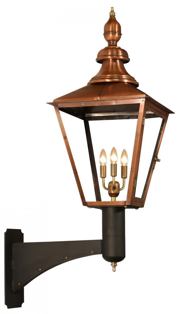 Size 43 Electric Copper Lantern, 3 candelabra base sockets, with Grand Harbor Extension ( 12" Extension )