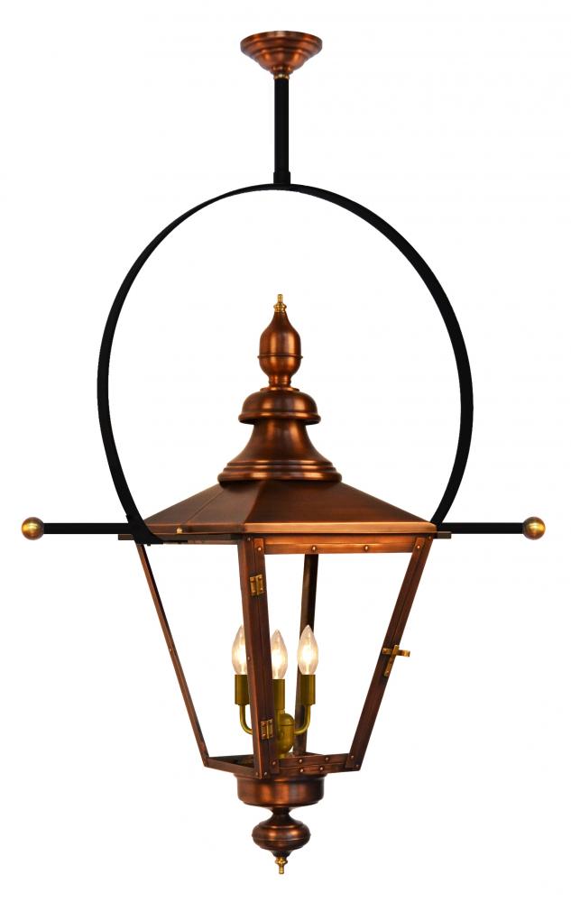 Size 44 Electric Copper Lantern, 3 candelabra base sockets, with Classic Yoke, Ladder Rest