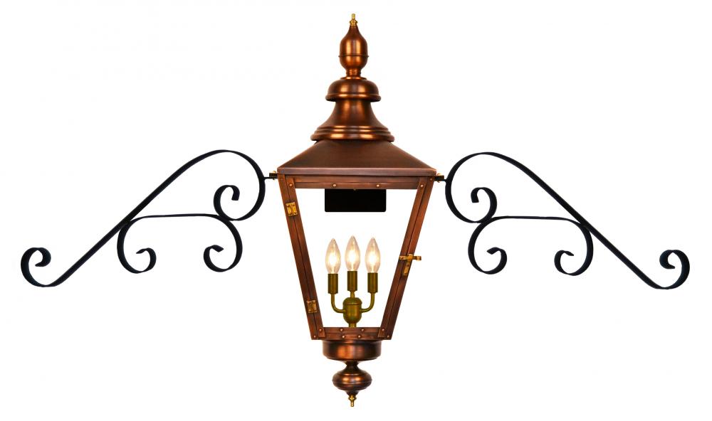 Size 44 Electric Copper Lantern, 3 candelabra base sockets, with Fancy Moustache