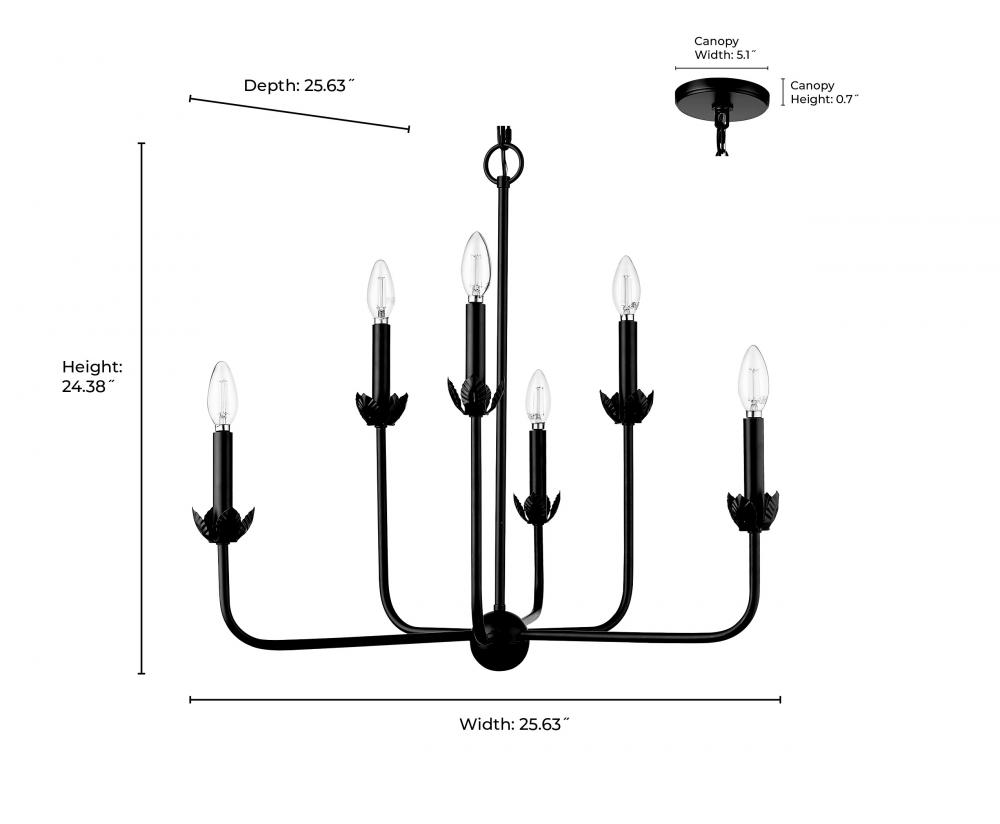 Freesia 6-Light Chandelier Ceiling Light Matte Black
