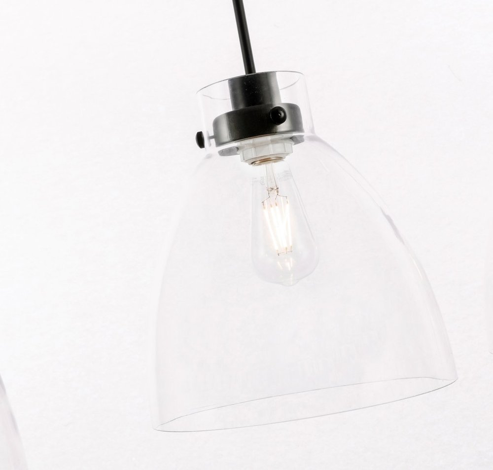 Elegant LD5030D42BK - Frey 3 light Black and Clear glass pendant