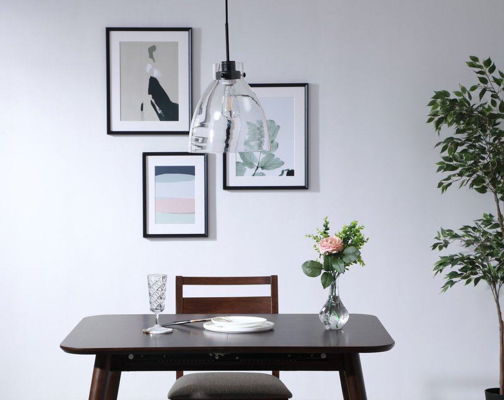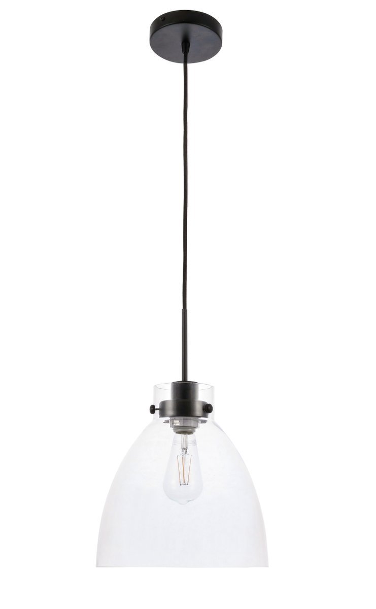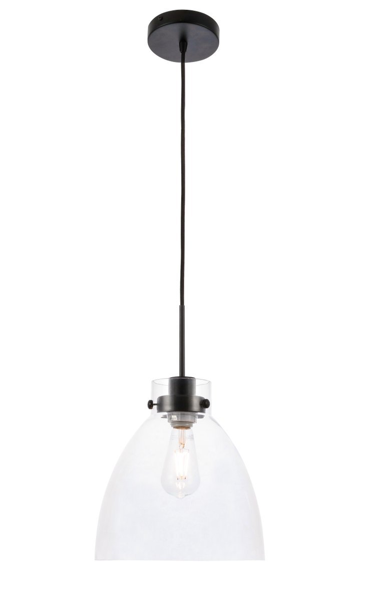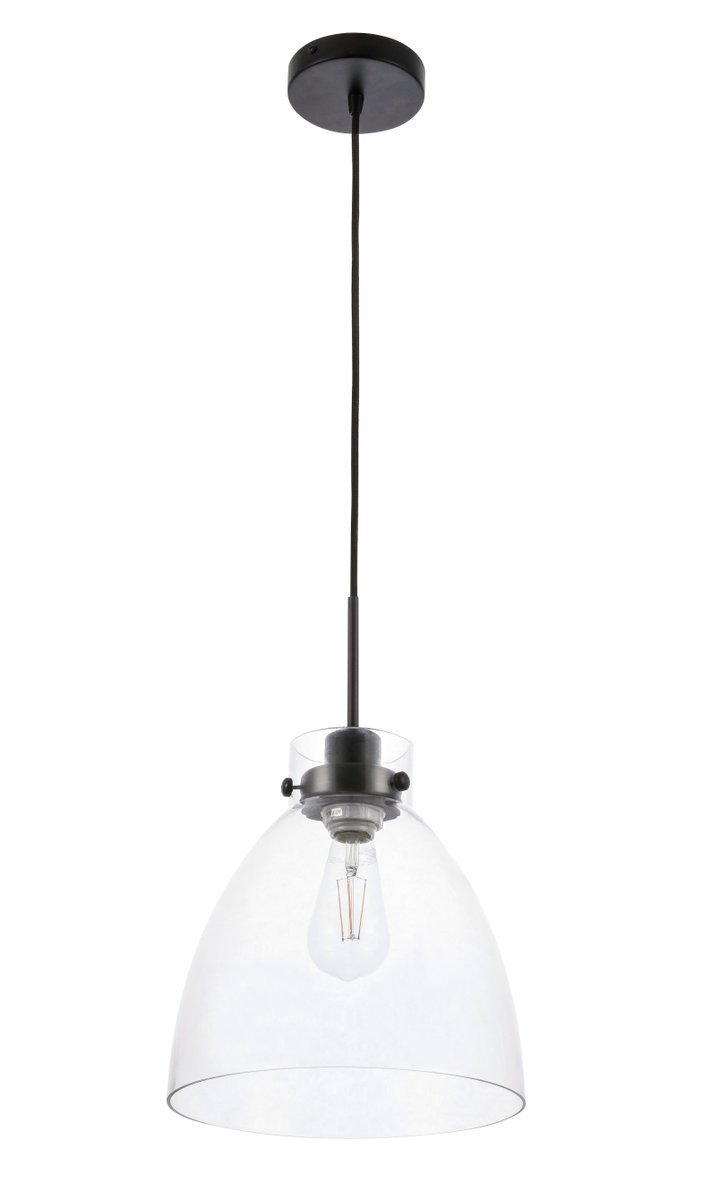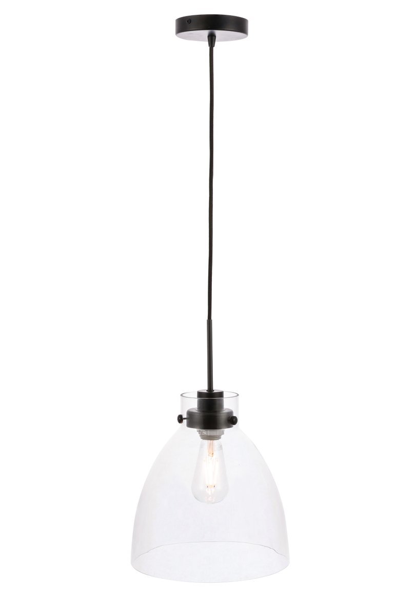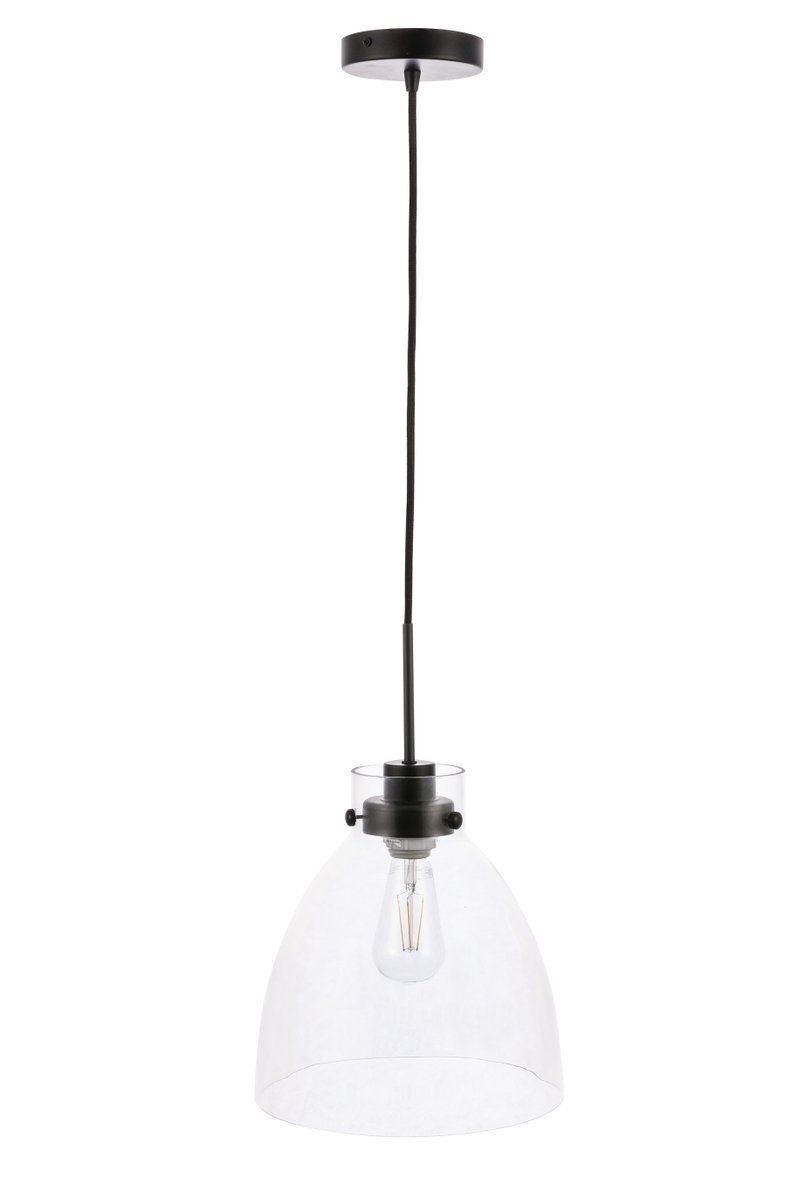 Elegant LD5029D11BK - Frey 1 light Black and Clear glass pendant