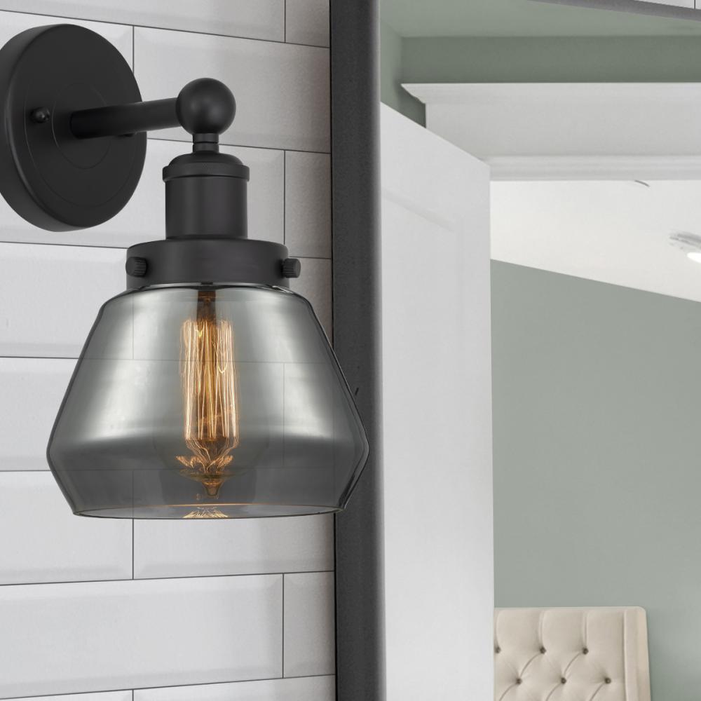 Fulton - 1 Light - 7 inch - Matte Black - Light Smoke Shade - Sconce