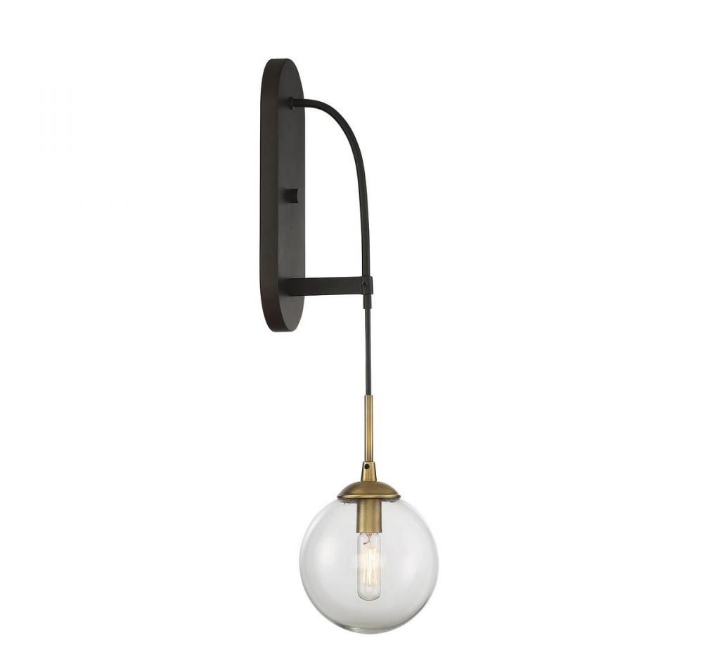 Whether you display it on its own, in a pair or in conjunction with a Fulton chandelier, the Fulton 1-light sconce from Savoy House is modern style lighting that is understated yet impactful. Artfully designed and constructed with top quality workmanship, this wall sconce features a timeless English bronze and warm brass finish atop a striking, albeit simple, clear glass globe. Its sleek, minimalist profile marries beautifully with urban, industrial, contemporary, mid-century modern and transitional décor. Hang one on either side of a bookcase, bed, mantle or bathroom mirror, stagger a few of them going up the wall over a staircase, add a bit of drama with a pair on dining room walls, or cast a perfect glow using several in a media room.