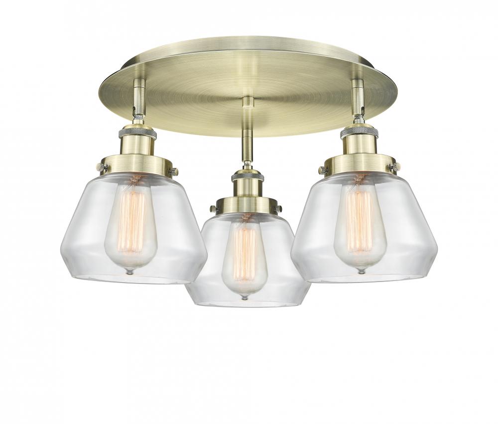 Fulton - 3 Light - 19 inch - Antique Brass - Clear Shade - Semi-Flush Mount