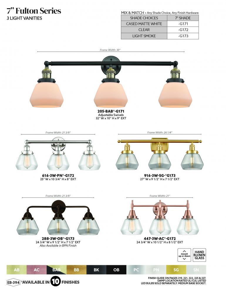 Innovations Lighting 447-3W-BK-G171 - Fulton - 3 Light - 25 inch - Matte Black - Bath Vanity Light