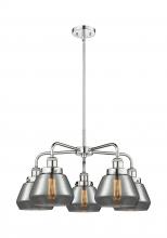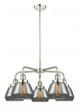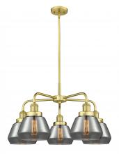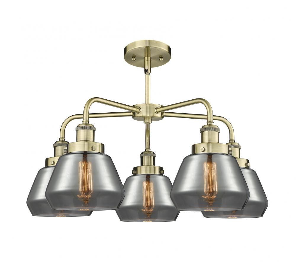 Fulton - 5 Light - 26 inch - Antique Brass - Light Smoke Shade - Chandelier
