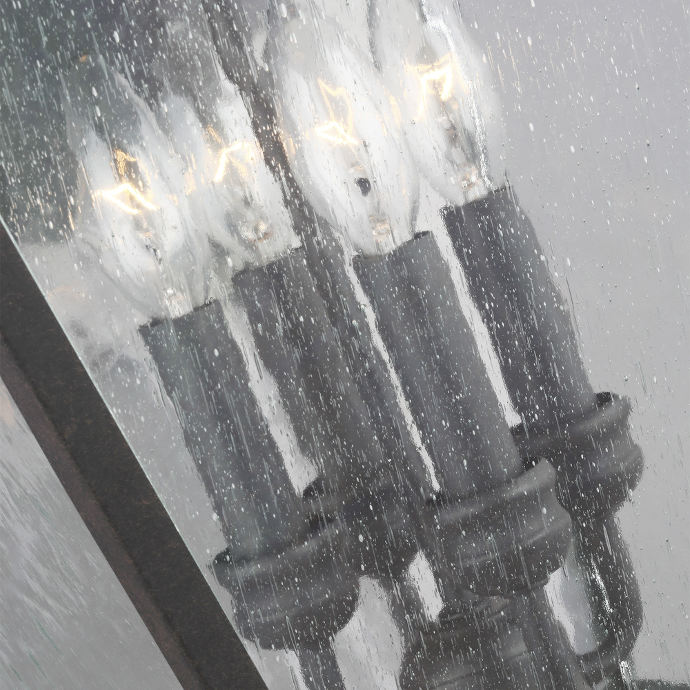 The Sean Lavin Galena four light outdoor wall fixture in sable enhances the beauty of your property, makes your home safer and more secure, and increases the number of pleasurable hours you spend outdoors. Galena is a Europe-inspired classic lantern. Simple and refined, Galena features a gently curved hook detail atop a vented, square-off roofline, and candle tubes floating within the tapered clear glass shades. Galena is a warm, welcoming silhouette offered in our NEW Sable finish.